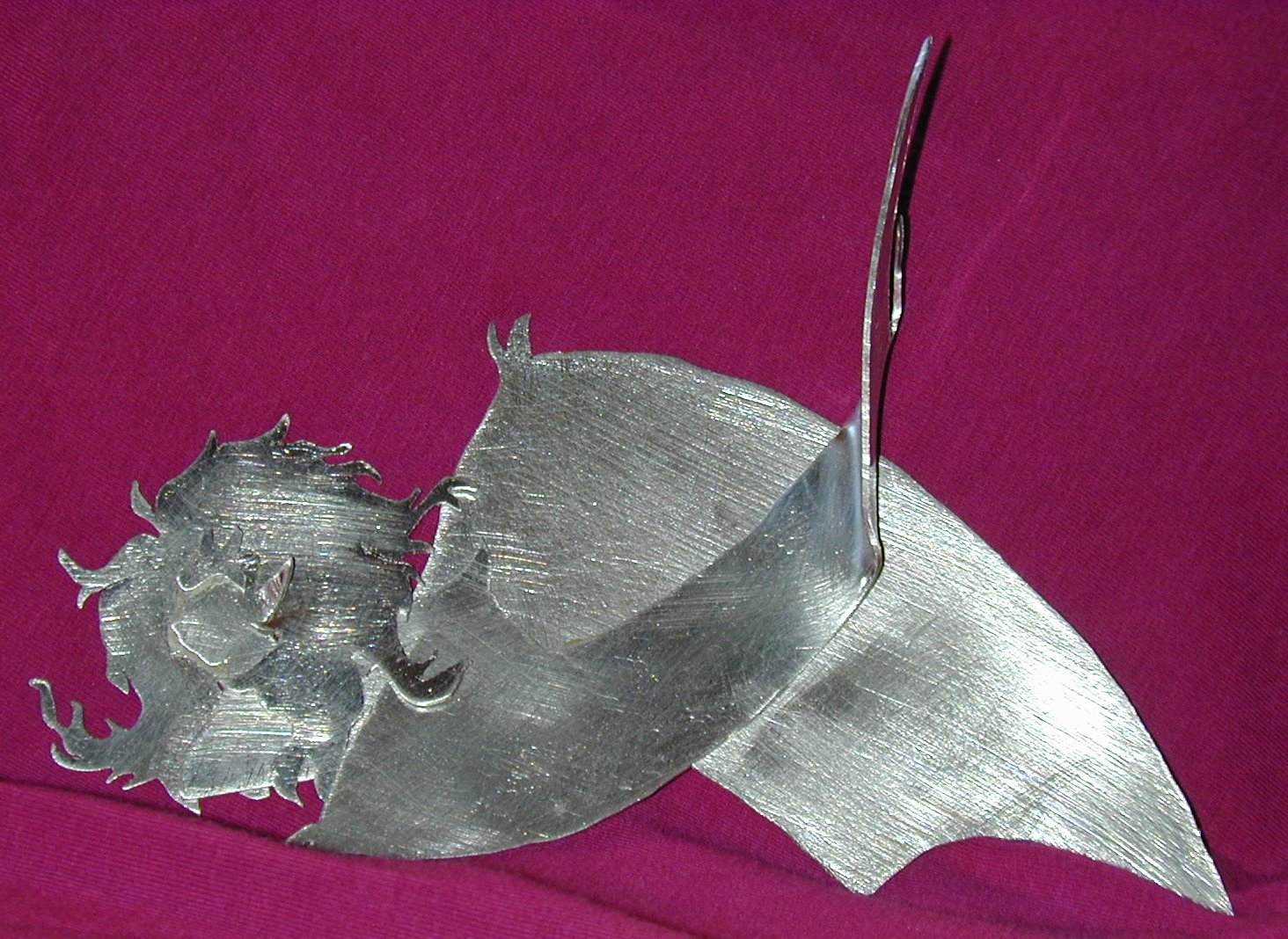 This is pewter, 20 gauge, done all by my lonesome over - well, waaaaay too long a period, just 'cause I like profiles like this. And the swirly hair was fun. A larger image can be found here, though it still doesn't show some things very well. Be that as it may.... Conna? I'm sending out some packages today, would you like me to send this somewhere? ^_^ I hope you like!